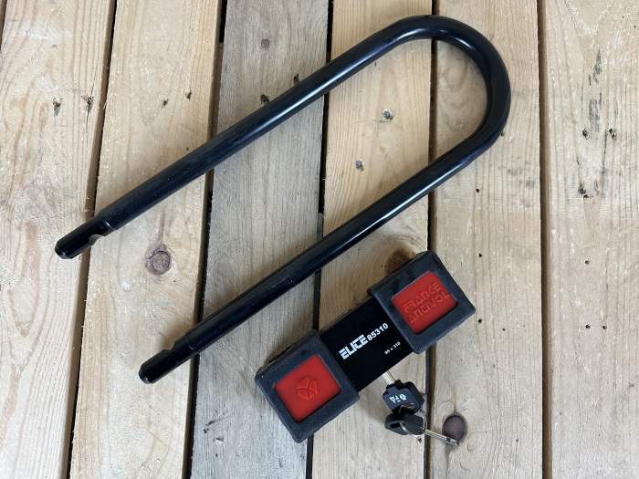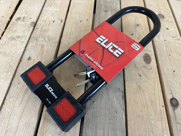 Candado antirrobo France Antivol ELITE con arco en U de acero cementado de 18 mm, mango reversible y doble sistema de bloqueo. Medidas: 95x310 mm. Seguridad reforzada y diseño robusto. Referencia: ELITE 85310. Más candados, cascos, ropa y accesorios en nuestro perfil. Envíos 24/48 h. WD2412191203 8421316073144 aceite motor grasa cadena embrague freno dot motul ipone castrol airoh givi stormer scorpion acerbis enduro motocross