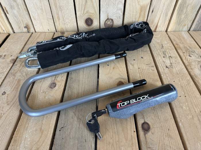 Cadena de seguridad con funda y candado antirrobo TOP BLOCK SILVER 270mm. Bloqueo en U. Dimensiones. Mango reversible 16mm de diametro de acero cementado. Mecanismo de doble bloqueo. Disponemos de más candados, pantalones, cascos, vestimenta, proteccion, neumaticos, accesorios para motos y mucho más. Entra en nuestro perfil o pregunta por lo que necesites. Envíos 24/48h. WD2412311035 aceite motor lubricante grasa cadena horquilla suspension embrague freno dot motul ipone castrol airoh givi kappa stormer scorpion acerbis shot enduro motocross chaqueta peto guantes gafas plastica