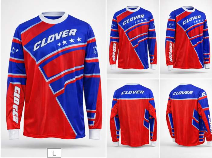 ¡¡¡OUTLET ROPA VINTAGE PARA MOTORISTA!!! Camiseta de moto Clover rojo y azul en talla L, vintage original de la época, con diseño deportivo y tejido resistente ideal para el uso diario o actividades off-road. Fabricada por CLOVER®, referencia en prendas para motoristas. Producto nuevo. Envío en 24 / 48 h en España. WD2410110003