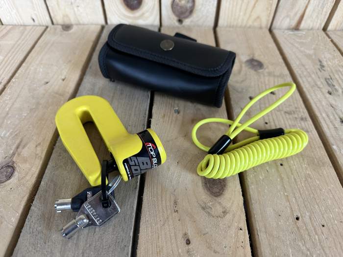 Candado antirrobo TOP BLOCK para disco de freno. Incluye funda de piel y cable de recordatorio. Compacto, práctico y fácil de usar para asegurar tu moto o scooter. Más candados, cascos, ropa y accesorios en nuestro perfil. Envíos 24/48 h. WD2412311028 aceite motor grasa cadena embrague freno dot motul ipone castrol airoh givi stormer scorpion acerbis enduro motocross