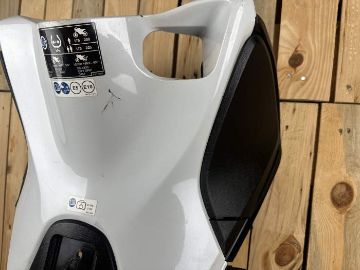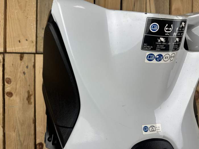 Contraescudo original en color blanco de Honda SH125i del 2019. Para ver el despiece completo de esta moto ponga en el buscador "HD19SH125". En buen estado, con anclajes y etiquetas originales. Ideal como recambio original o sustitución directa. Piezas válidas para otros años y versiones SH125i (asegurarse). Envío disponible. HD19SH12500006