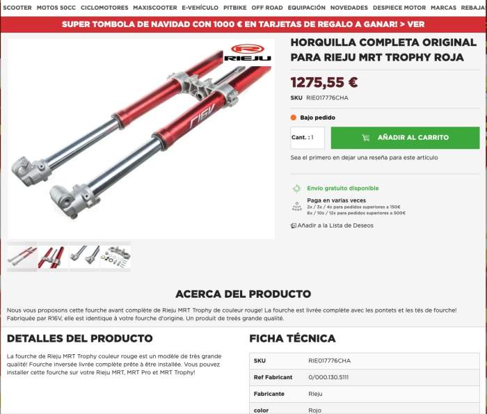 HORQUILLA/BARRAS R16V RIEJU MRT TROPHY