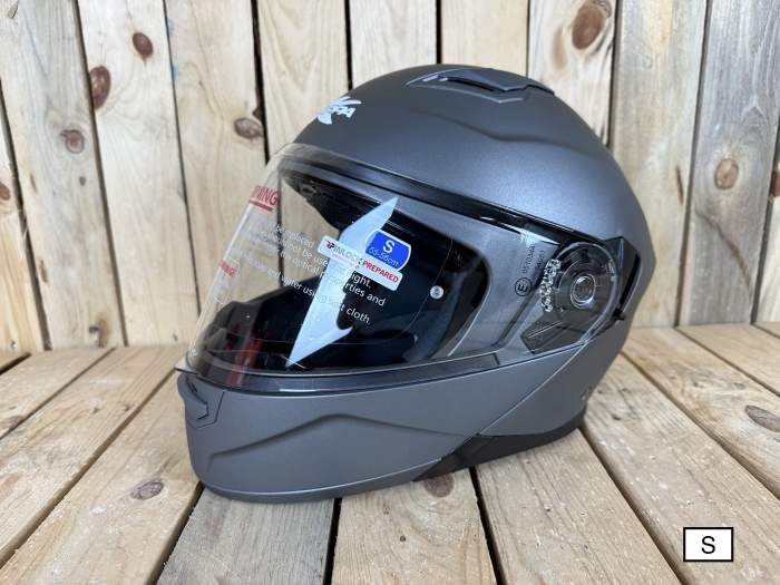 Casco modular Kappa KV31 Arizona en color titanio mate, talla S. Incluye visera transparente antiarañazos preparada para Pinlock (no incluido), visera solar interior ahumada y cierre micrométrico. Interior extraíble y lavable para mayor confort. Disponemos de más tallas (XS a 2XL) y una amplia gama de cascos, ropa, protecciones y accesorios para moto. Consulta nuestro perfil o pregúntanos. Envíos 24/48h. WD2412021923