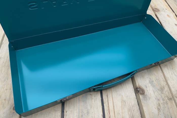 Precio tienda: 35€. Caja maletín metálico con asa abatible y doble cierre de seguridad, ideal para guardar herramientas, tornillería, material electrónico, material de dibujo, medicamentos, fotos o cualquier pequeño objeto que quieras mantener bien protegido. Interior preparado para añadir espuma o pieza troquelada y organizar fácilmente su contenido. Medidas 44×18×5 cm. Nuevos a estrenar. Disponemos de gran cantidad de stock. ENVÍO DISPONIBLE. WD2410110765