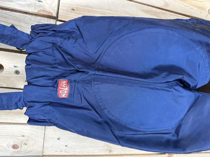 PVP:180€/Outlet:54€. Pantalon chubasquero con tirantes azul marino. Talla 48-M. Gran liquidación con un ¡¡¡70% DE DESCUENTO!!! marca Nolan Helmets. Talla 48-M. Producto nuevo. Envíos 24/48h. Tallas XS-3XL. Esta liquidación consta de chaquetas, chaquetas de cuero, cordura, monos, pantalones, prendas waterproof, deslizaderas, guantes, bragas, gafas, sudaderas, fajas… WD2407180854 honda yamaha ducati Kawasaki cafe racer bmw antiguo kiwi pioggia montesa harley bultaco revit denise domintor xt xtz750 capra impala vintage lobito custom trail UFO