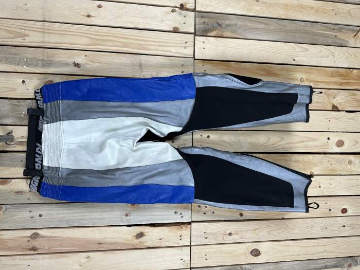PVP:320€/Outlet:96€. Pantalon de cuero para moto Garibaldi. Con rodilleras y Velcro para deslizaderas. Cremallera para hacer mono de 2 piezas con una de nuestras chaquetas. Talla 44-S. Gran liquidación con un ¡¡¡70% DE DESCUENTO!!! GARIBALDI®️ es un prestigiosa marca española de ropa y complementos para motociclistas de alta calidad y de fabricación nacional. Producto nuevo. Envíos 24/48h. Tallas XS-3XL. Esta liquidación consta de chaquetas, chaquetas de cuero, cordura, monos, pantalones, prendas waterproof, deslizaderas, guantes, bragas, gafas, sudaderas, fajas… WD2407180859 honda yamaha ducati Kawasaki cafe racer bmw antiguo kiwi pioggia montesa harley bultaco revit denise domintor xt xtz750 capra impala vintage lobito custom trail UFO