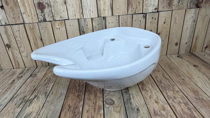 Porcelana para lavacabezas de peluquería en color blanco, con medidas aproximadas 62 × 52 × 30 cm. Opcionales disponibles: sistema basculante (+45 €), válvula de desagüe (+15 €) y ducha con monomando (+60 €). Fabricada en cerámica sanitaria de alta calidad, resistente al uso intensivo y de fácil limpieza. Diseño ergonómico con orificios para grifería y desagüe, ideal para peluquerías, barberías, reposiciones o proyectos de reforma. . Varias unidades disponibles. Envío posible. WD2410110814