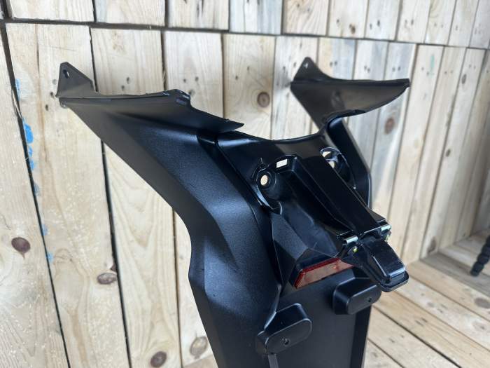 Portamatrículas original de Honda SH125i del 2019, incluye catadióptrico y luz de matrícula. OEM: 80100-K77-D000. Para ver el despiece completo de esta moto ponga en el buscador "HD19SH125". En muy buen estado general, sin grietas ni roturas, listo para montar. Ideal como recambio original o sustitución directa. Piezas válidas para otros años y versiones SH125i (asegurarse). Envío disponible. HD19SH12500019