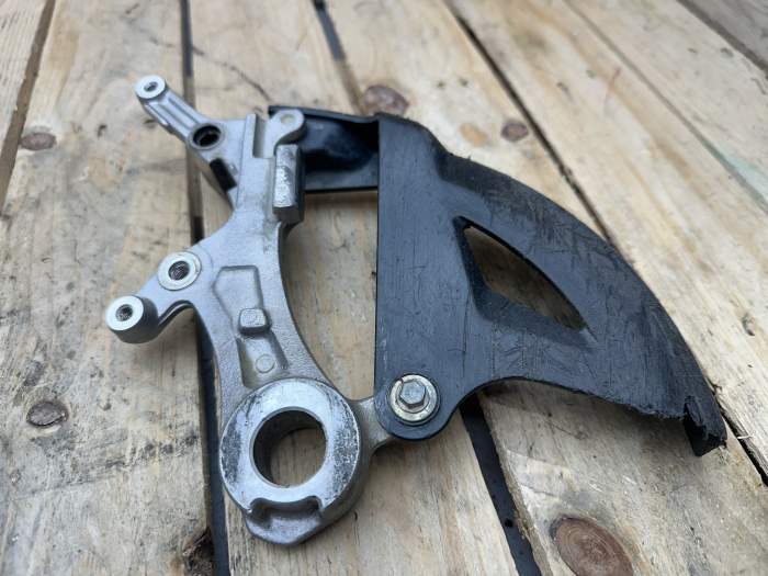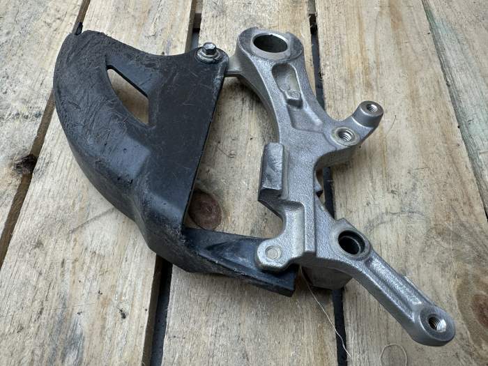 Protector original de disco y soporte de freno, compatible con modelos Yamaha WR450F y YZ450F de los años 2006 a 2019. Referencia Nissin: 1C3‑52. En buen estado general, presenta signos normales de uso en la pieza plástica (muescas y desgaste). Con lija y spray se puede dejar perfecta. Ideal para rutas offroad, reparaciones o repuestos. WD2508061038 protector disco trasero WR/YZ, recambio freno, guard freno Yamaha, pieza frontal trail, accesorio moto.