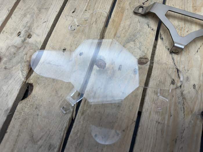 Protector de faro transparente para BMW R1300GS, con soporte metálico y kit completo de anclajes. Protección eficaz contra piedras, insectos y suciedad sin perder visibilidad. Muy fácil de instalar y desmontar para limpieza. NO SE HA LLEGADO A MONTAR. WD2507010846