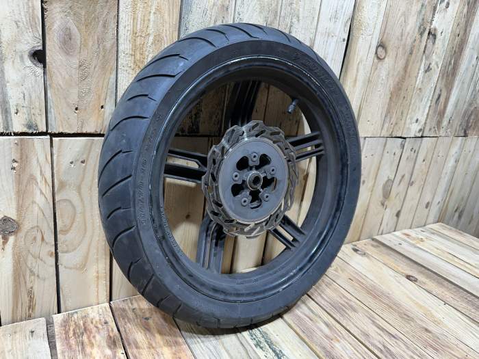 Rueda trasera completa de SYM Symphony SR125 del 2011, incluye llanta, neumático y disco de freno. Para ver el despiece completo de esta moto ponga en el buscador "SY11SY125". En buen estado, llanta recta y sin golpes, disco en buen uso. Ideal como recambio o sustitución directa. Piezas válidas para otros años (asegurarse). Envío disponible. SY11SY12500011