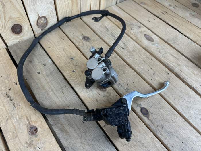 Sistema de freno delantero completo de SYM Symphony SR125 del 2011, incluye bomba, maneta, latiguillo y pinza de freno. Para ver el despiece completo de esta moto ponga en el buscador "SY11SY125". Buen estado, tal y como se aprecia en las fotos. Piezas válidas para otros años (asegurarse). Envío disponible. SY11SY12500006
