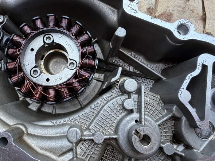 Tapa lateral izquierda del motor original Piaggio, incluye estator con bobinado completo, sensor pick-up y mazo de cables con conectores, tal como se muestra en las fotos. Compatible con Piaggio Beverly 350 y otros modelos con motor 330cc. En buen estado, sin grietas ni daños estructurales. Ideal para sustituir el conjunto completo de encendido. WD2512311207